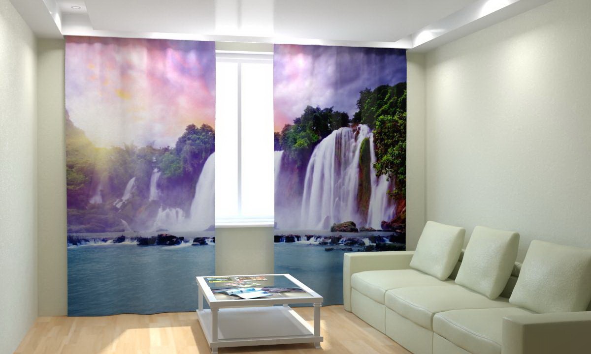 Комплект светонепроницаемых штор "Закат у водопада" - fgospostavki.ru - Апрелевка