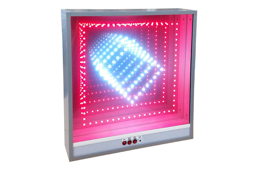 Корпус панели изготовлен из пластикового профиля серого цвета. Внутри корпуса расположено безопасное акриловое зеркало с отверстиями для светодиодов, которые имитируют два уходящих в бесконечность тоннеля в виде квадрата по периметру и в виде ромба по центру. Внешний квадратный тоннель управляется с одного выносного пульта и имеет акустический режим (управляется от внешних звуков, издаваемых человеком: хлопок в ладоши, топание ногой, крик). Внутренний тоннель в виде ромба управляется с помощью второго пультаОба режима работают независимо друг от друга и могут быть включены как вместе, так и по отдельности.