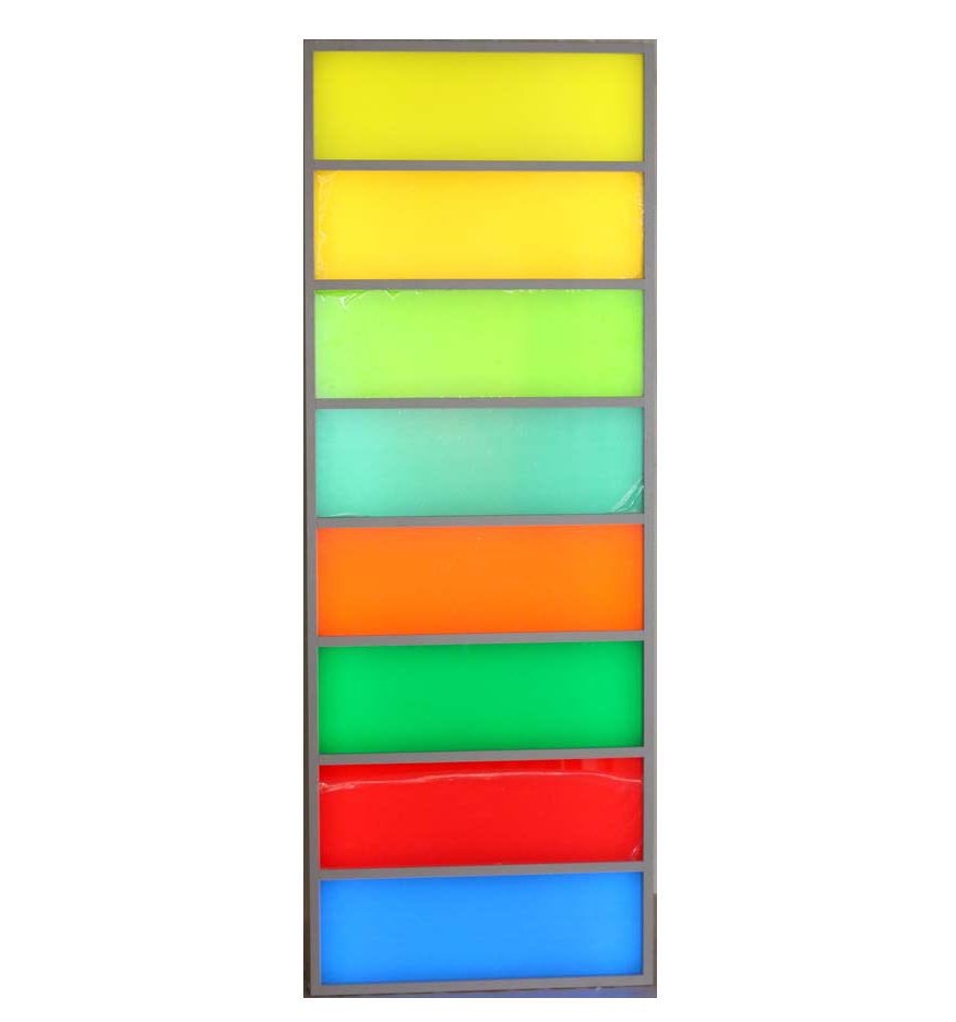 Размер 150х55х20см. 8 ячеек. В зависимости от громкости звука загорается разное количество ячеек. Материалы: ЛДСП, акрил.