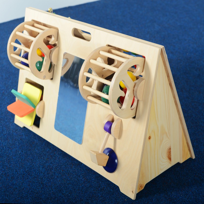 Двухсторонняя тактильная панель «Звездочка» отлично разрабатывает у детей осязательные навыки, помогает развить интерактивную деятельность, а также предназначена для звуковой стимуляции.  Панель удобна в использовании - ее можно разместить как на полу, так и на столе. Корпус выполнен из дерева, в верхней части находится ручка для переноски.