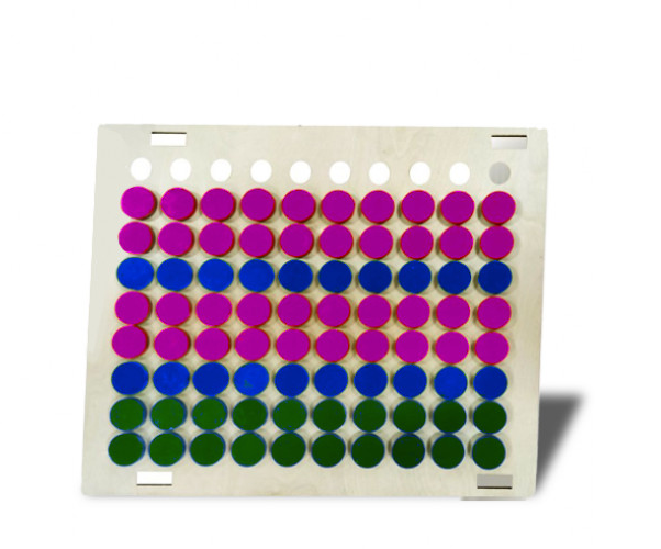 Тактильно-развивающая панель с цветными фигурками - это красивая игровая зона, которая выполнена из качественных материалов и не оставляет зацепок в детских ручках. Это деревянная панель с отверстиями, в которые можно вставлять разноцветные фишки. Их можно перемещать и сортировать по цвету. Тактильно-развивающая панель заинтересует как маленьких детей, так и постарше, а родителям поможет сохранить дом в целости и сохранности. Она подойдет для домашнего использования и для специальных учреждений.