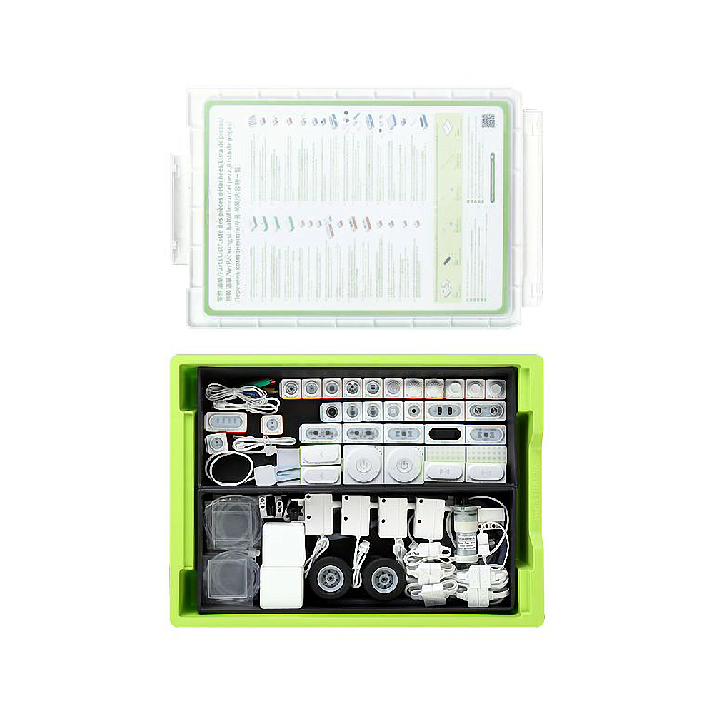 Он включает в себя основные программируемые электронные элементы робота (модули питания и связи, датчики, исполнительные модули, силовые модули и т.д.). Собираемые из модулей проекты знакомят детей с устройством робота, позволяя понять принцип работы БЕЗ ПРОГРАММИРОВАНИЯ. Легкое соединение модулей, возможность использования модулей без программирования, програмирование в приложении Neuron и совместное программирование с роботом Codey Rocky на ПК в mBlock5. Набор рекомендован, как переходная ступень от безэкранного программирования mTiny к программированию роботов в графической среде mBlock5.