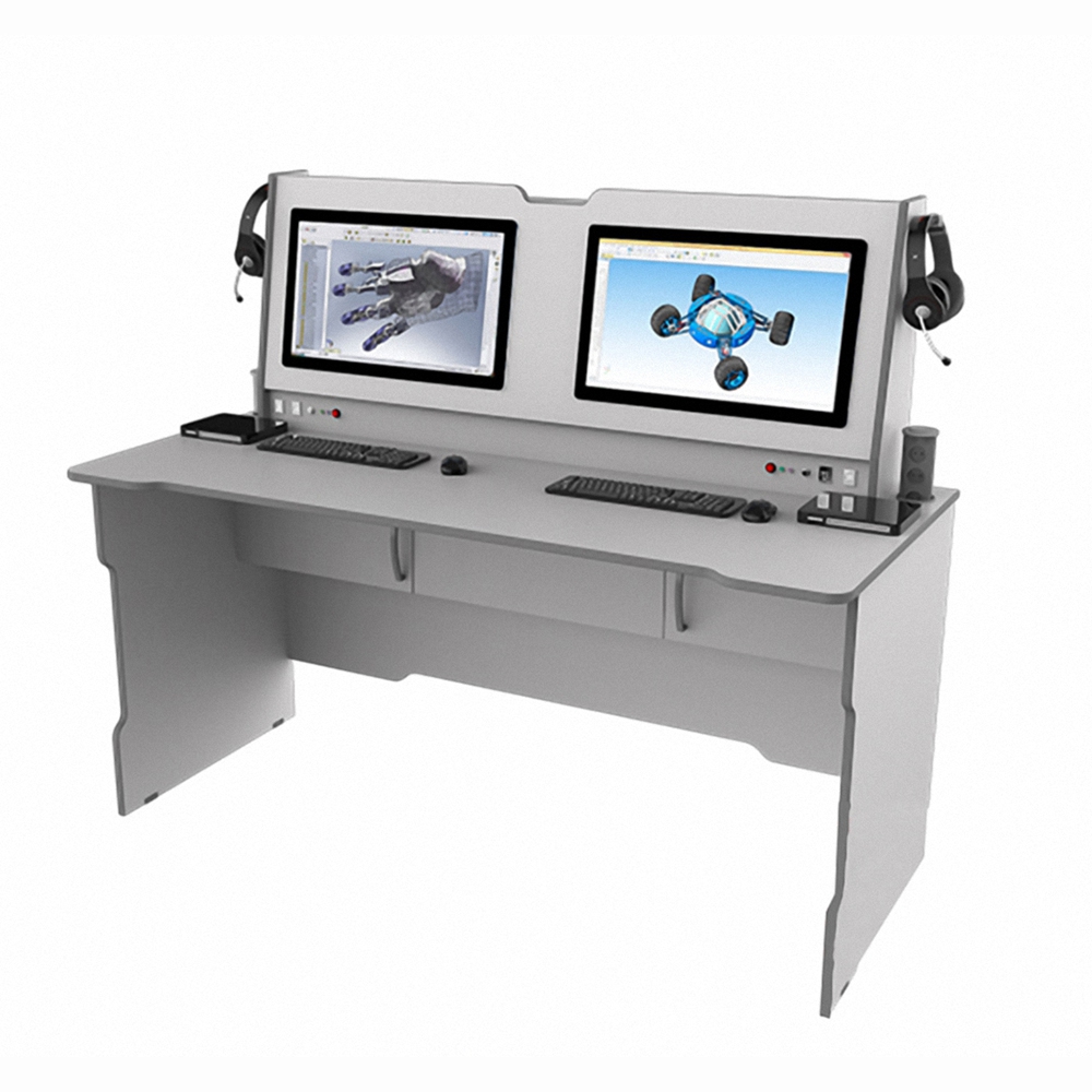 Мультимедийный интерактивный Робостол 2 – это оборудование с мультимедийными функциями для оснащения классов робототехники, детских садов, школ, игровых комнат, развивающих кружков. Представляет конструкцию классического спаренного рабочего стола для двоих учеников с вмонтированными интерактивными системами. Корпус изготовлен из экологичного ЛДСП, безопасного для детей.