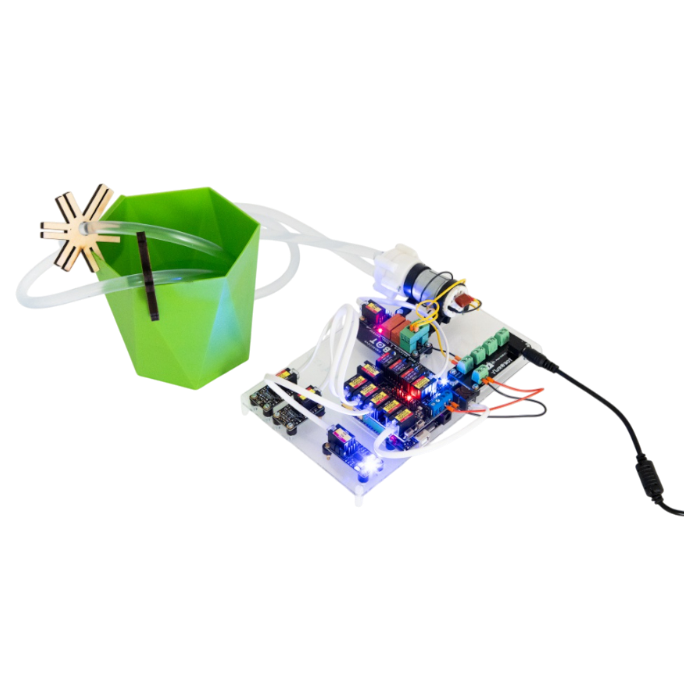 Образовательный набор «Стартовый ЙоТик М4» предназначен для начального уровня обучения по основным понятиям технологии «Интернет вещей» (IoT) в концепции «Умное сельское хозяйство» для изучения базовых функций для выращивания: автополив, умное освещение, мониторинг данных.