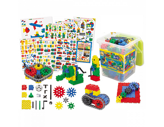 Конструктор Юный Инженер упакован в ударопрочный пластиковый короб с крышкой и удобной ручкой для переноски и хранения деталей.