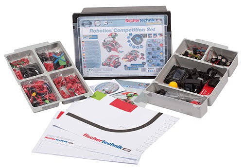 Набор включает: программное обеспечение ROBO Pro, программируемый контроллер ROBOTICS TXT, видеокамеру с USB интерфейсом, комбинированный датчик (3 датчика в одном устройстве: трехосный гироскоп, трехосный акселерометр, геомагнитный датчик), 3 ультразвуковых дальномера, оптический датчик траектории, оптический датчик света, фоторезистор, термистор, аккумулятор NiMH 8.4 В / 1500 мА*ч и зарядное устройство, USB-кабель A mini-B для подключения к компьютеру, два мотора с энкодером, мотор XS, лампы и светодиоды, кнопки, детали для сборки конструкции, полигоны для соревнований, мячик для робо-футбола, Рабочая тетрадь 2 в 1 (ROBO TX Исследователь и TXT Набор первооткрывателя),