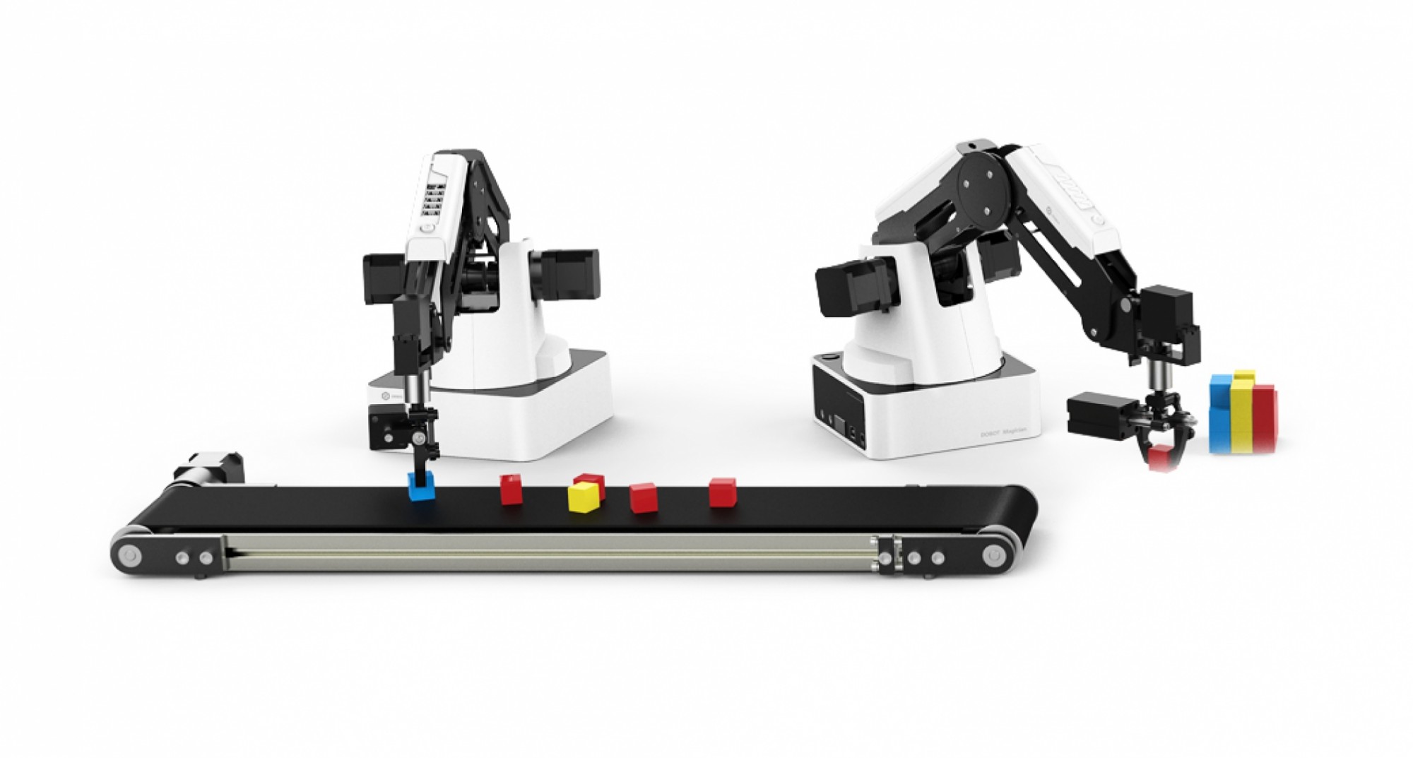 Конвейерная лента для манипуляторов Dobot Magician позволяет создать макет производственной ячейки, обеспечив транспортировку объектов манипуляций, а входящие в комплект датчики позволят изучить основы автоматизации производственных процессов, открывая новые возможности по созданию увлекательных проектов.