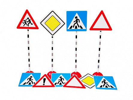 Комплект представляет собой набор стоек из полипропиленовых труб на основании с дорожными знаками.