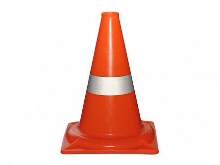 Сигнальный дорожный конус представляет собой техническое средство организации дорожного движения в форме конуса оранжевого цвета с площадкой у основания и одной световозвращающей полосой.