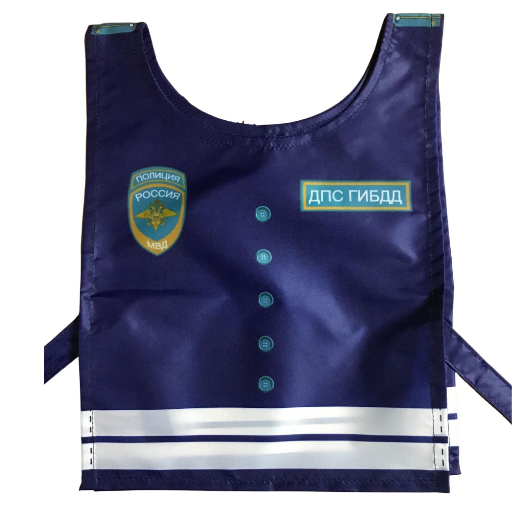 Жилет отлично дополнит игру с автогородком, может быть задействован с набором ролевых жилетов. Даёт возможность ребенку попробовать роль инспектора ДПС. В наличии также есть жезл регулировщика, который можно приобрести отдельно. Жилет удобен в самостоятельном использовании детьми, застёгивается на липучки. Цвет жилета как у формы настоящего инспектора!