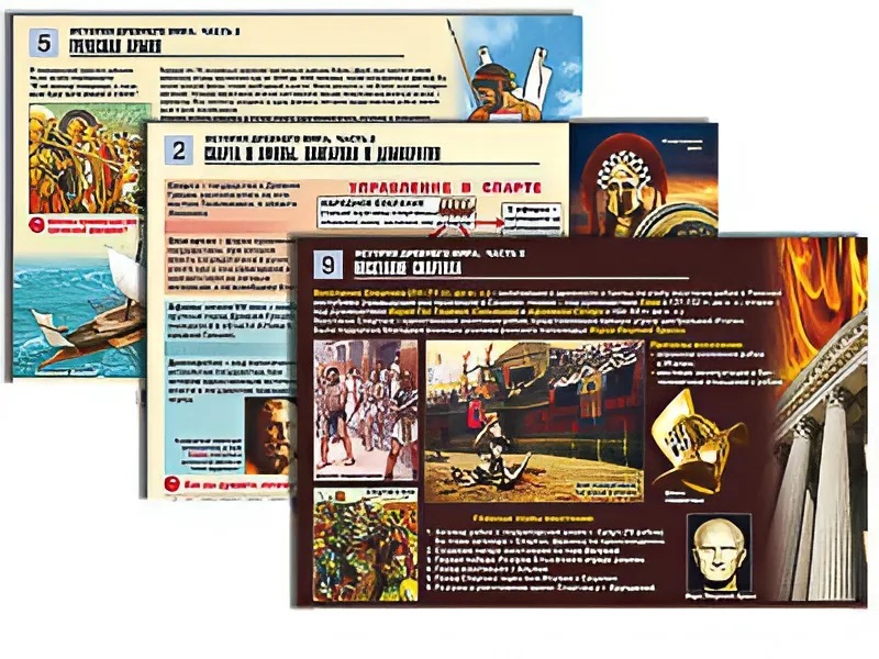 Комплект таблиц по истории "История древнего мира. Часть 2" раздаточные (цветные, ламинированные, А4, 12 штук) - fgospostavki.ru - Апрелевка
