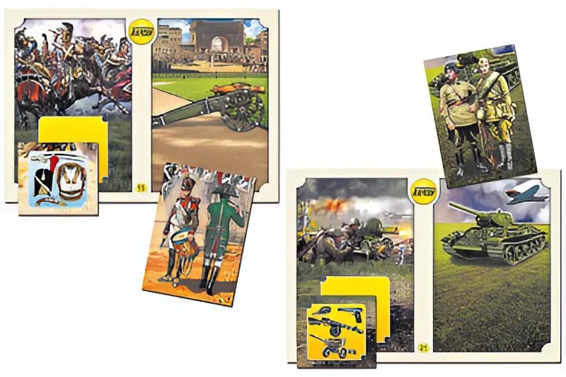 Игра состоит из 24 полноцветных игровых полей формата А5, 24 квадратных и 24 прямоугольных полноцветных карточек. Карточки и игровые поля изготовлены из картона и ламинированы пленкой. Изображения на игровых полях иллюстрируют определенные события или периоды в истории России. На карточках для правой части игрового поля (прямоугольных) даны изображения воинов, принимавших участие в сражениях данного периода. Карточки служат продолжением изображений на игровых полях и содержат общие с ними детали фона. На карточках для левой части игрового поля (квадратных) дана врезка, на которой представлены вооружение и элементы экипировки соответствующего периода.