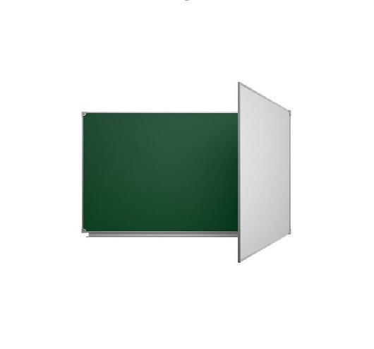 Двухэлементная магнитная школьная доска, предназначена для письма мелом и маркером, имеет матовое антибликовое покрытие, которое обеспечивает четкую видимость изображений под любым углом зрения.