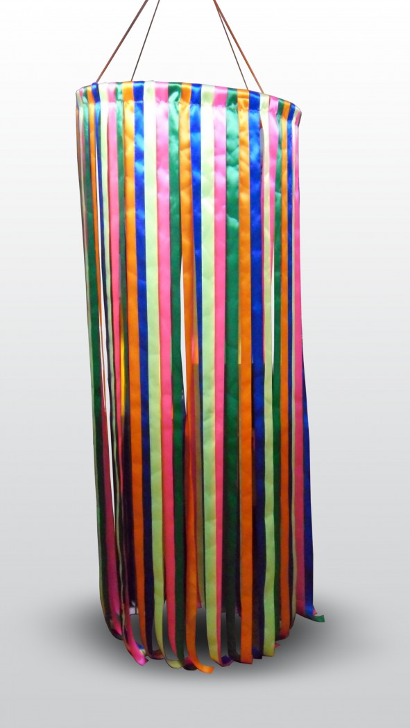 Шелковые ленты спускаются вниз, словно струи воды; их приятно трогать, перебирать в руках, сквозь них можно проходить, касаясь лицом. Основанием сухого душа служит металлический обруч.