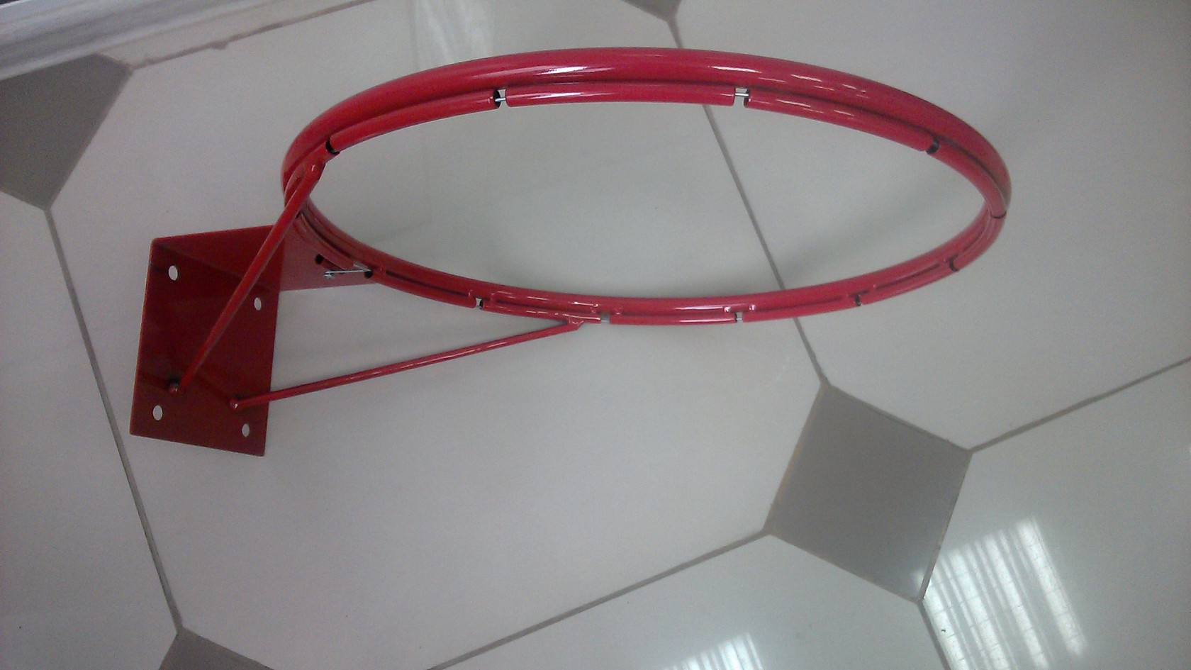 Кольцо баскетбольное представляет собой сварную конструкцию, состоящую из: кольца и крепежной пластины 150х147мм с 4мя отверстиями, усиленной подпорками.