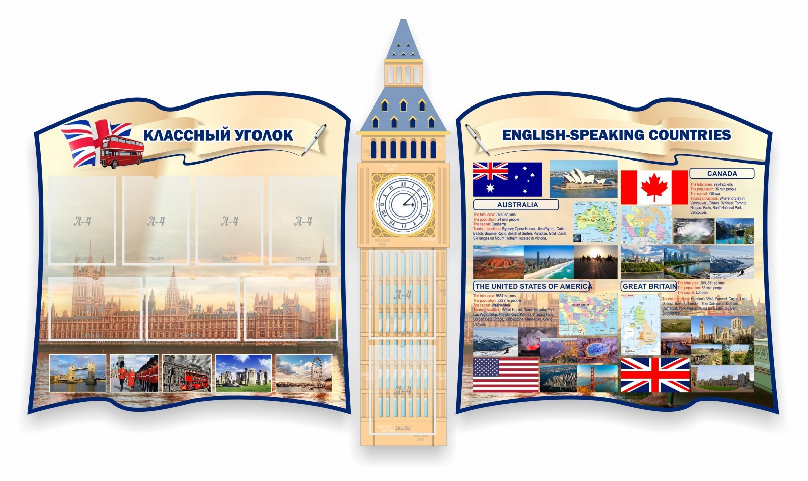 Главная Каталог Стенды Классные уголки Стенд "Классный уголок" для кабинета английского языка (резной стенд)