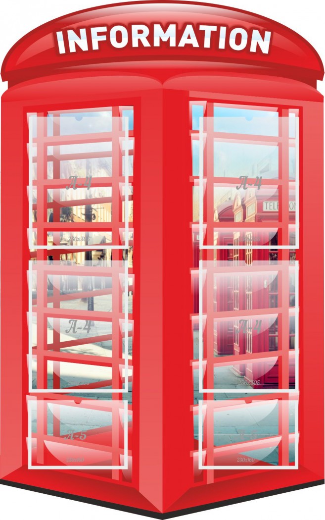 Школьный резной твёрдый стенд "ИНФОРМАЦИЯ", выполненный в виде традиционной английской телефонной будки, станет центральным украшениям холла или учительской любой школы, учебного центра, университета или училища.