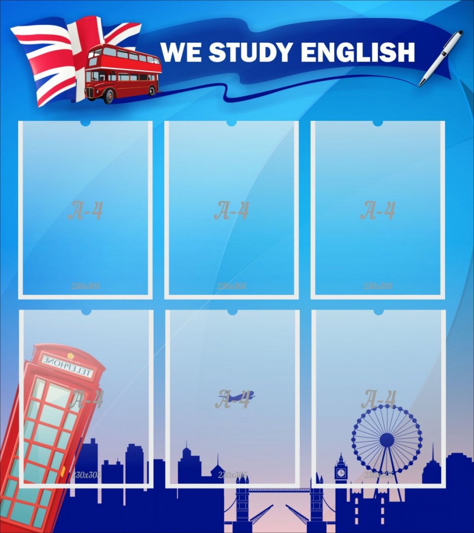 Традиционные английские символы, качественная полимерная основа, яркие и насыщенные краски – что может быть лучше для оформления информационного уголка кабинета английского языка?