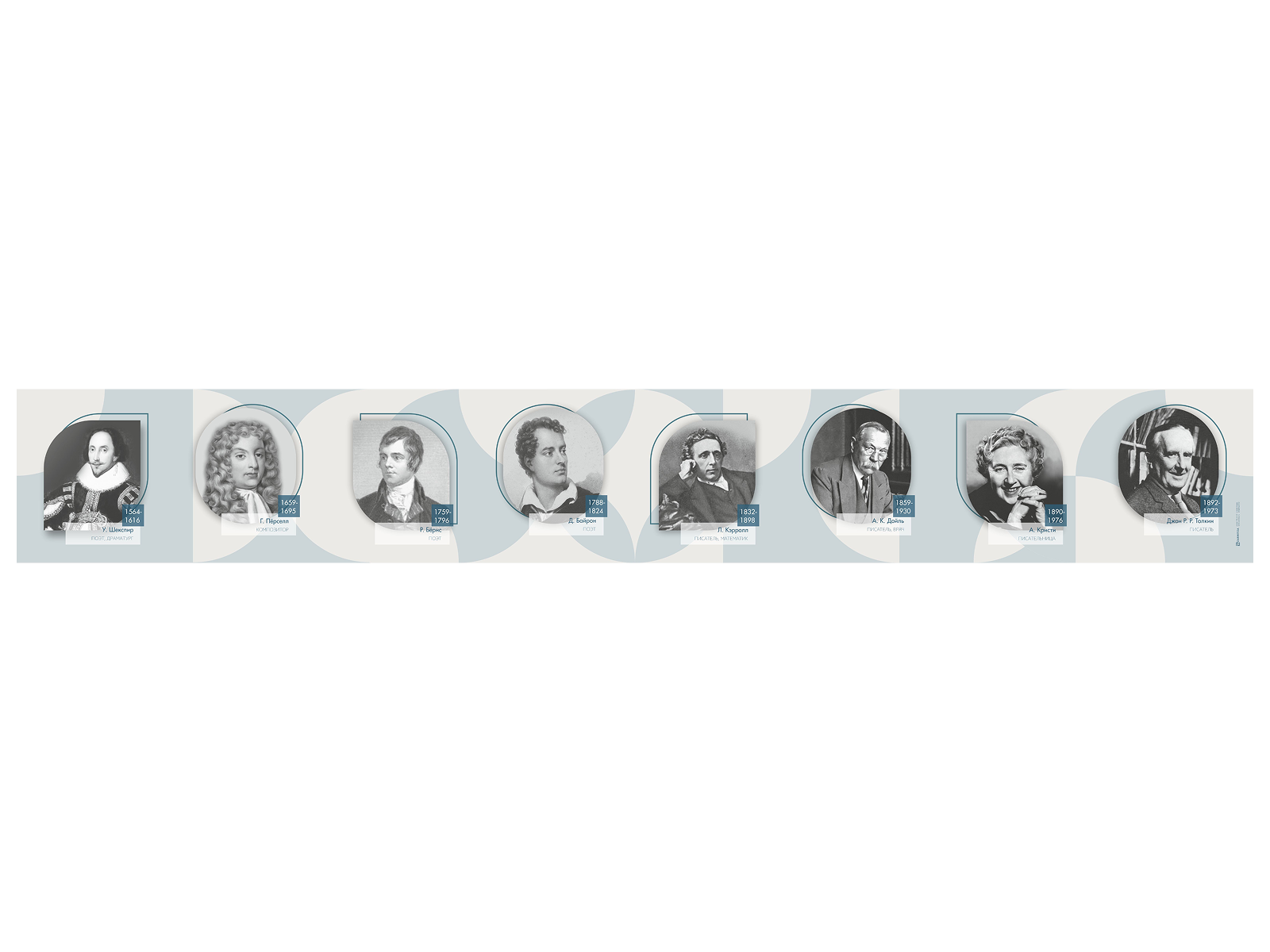 Стенд-лента представляет собой панель, на которой размещена информация о выдающихся писателях и деятелях культуры стран изучаемых языков.