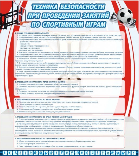 Главная Каталог Стенды Кабинеты Физкультура Стенд "Техника безопасности занятий по спортивным играм"