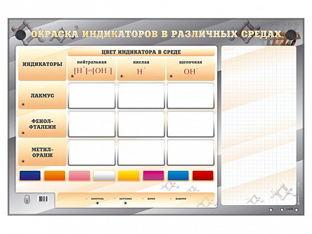 Электрифицированный стенд предназначен для приобретения и закрепления учащимися общеобразовательных учебных учреждений базовых знаний и навыков определения среды и окраски индикаторов в различных средах при проведении практических реакций.