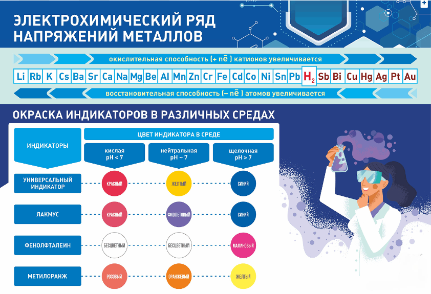 Стенд "Электрохимический ряд и окраска индикаторов в различных средах"