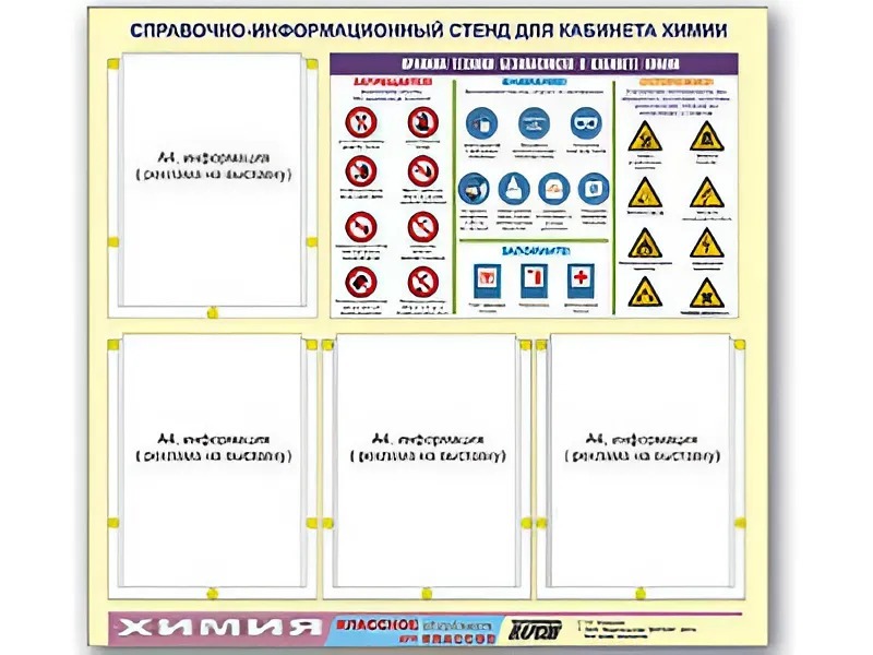Стенд информационный "Правила техники безопасности в кабинете химии" (80х75, 4 кармана) - fgospostavki.ru - Апрелевка