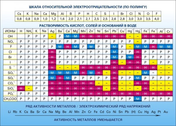 Стенд "Растворимость кислот, солей и оснований в воде (подробная)"