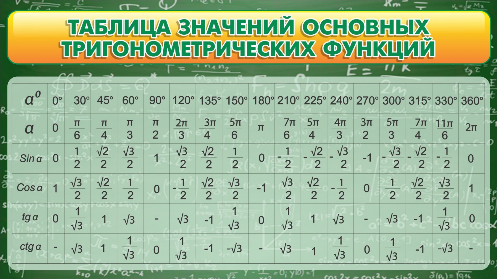 Стенд "Таблица значений основных тригонометрических функций" Вариант 2 - fgospostavki.ru - Апрелевка
