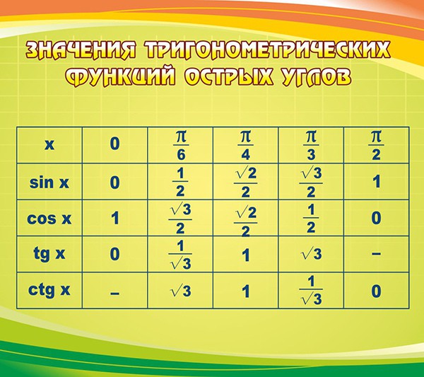 Стенд "Значения тригонометрических функций острых углов" - fgospostavki.ru - Апрелевка