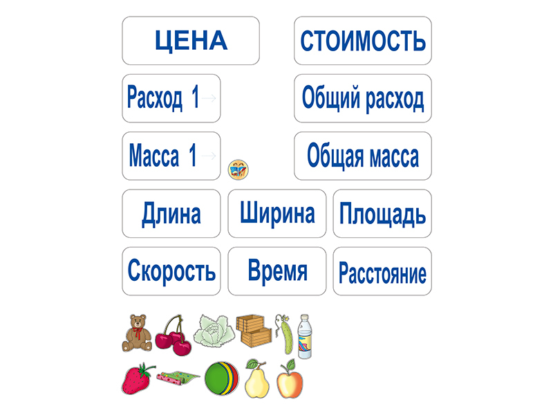 К фрагменту прилагается комплект тематических магнитов "По предмету "математика"", которые позволяют обозначить исходные данные задачи.