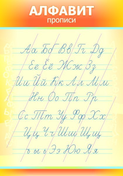 Прописной алфавит на ярком стенде с дизайнерским подходом. Таким образом, школьникам начальных классов, будет намного легче запомнить, одновременно прописной почерк, и весь русский алфавит. Стенд выглядит очень приятно и ни один ученик не сможет устоять от полнейшего ознакомления с этим стендом. А алфавит, как ни крути, придется запомнить всем. Конечно, взрослые люди, знают наизусть его ни всегда, но они и так, умеют писать, и все буквы знают. А со школьников, будут спрашивать алфавит, в котором буковки подряд и знать их нужно наизусть, в верном порядке. Так что такой радужный дизайн, побудит школьников лучше учиться.