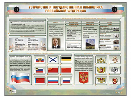 Интерактивный электрифицированный стенд предназначен для наглядного отображения информации о форме государственного устройства и символике Российской Федерации, а также для формирования у учащихся или курсантов знаний об отличительных признаках нашей страны.