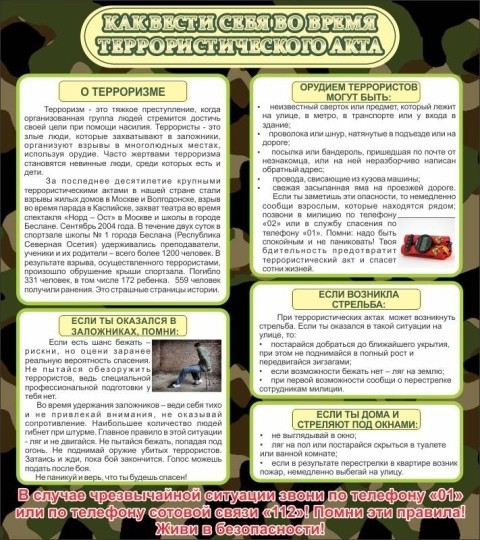 Стенд "Как вести себя во время террористического акта"