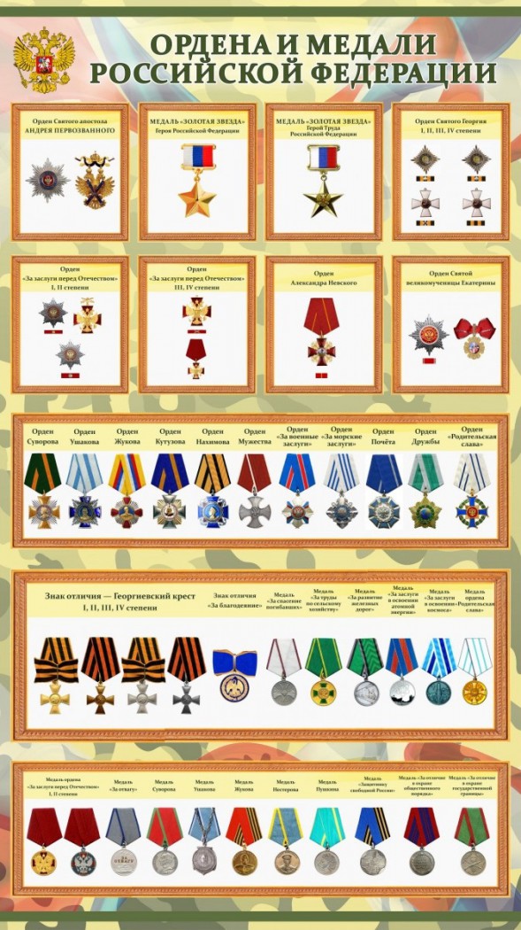 Главная Каталог Стенды Кабинеты ОБЖ и НВП Стенд "Ордена и медали Российской Федерации"