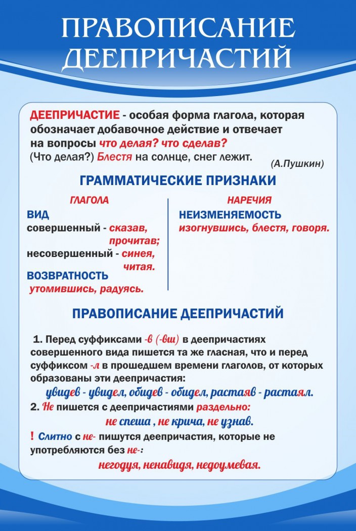 Стенд "Правописание деепричастий" - fgospostavki.ru - Апрелевка
