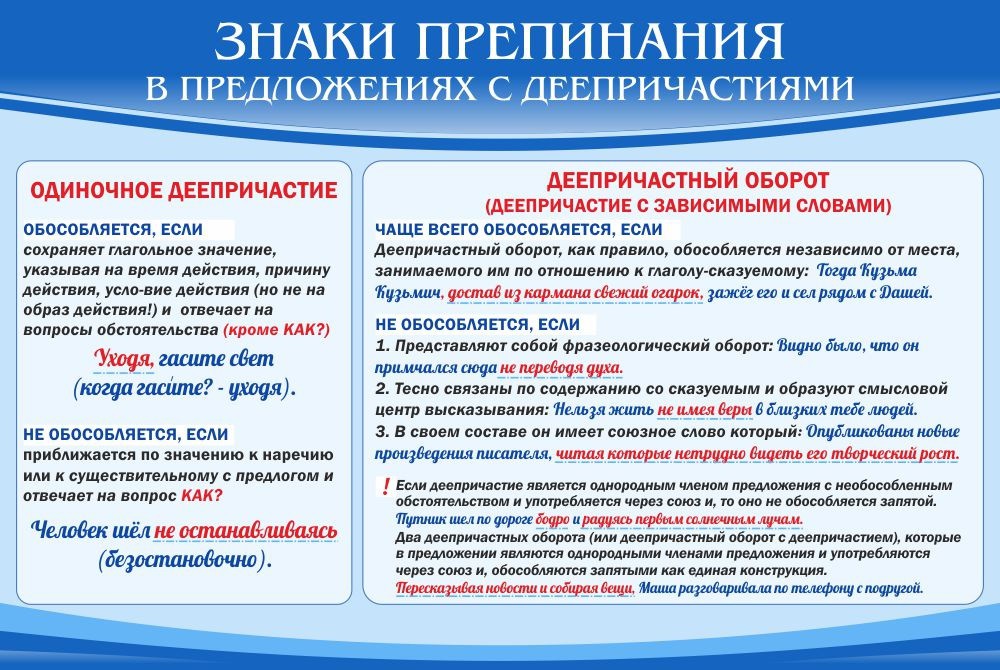 Главная Каталог Стенды Кабинеты Русский язык и литература Стенд "Знаки препинания в предложениях с деепричастием"
