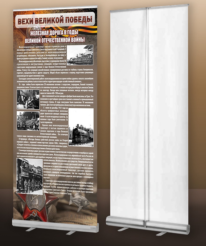 Мобильный стенд ролл-ап "Железная дорога в годы ВОВ" - fgospostavki.ru - Апрелевка