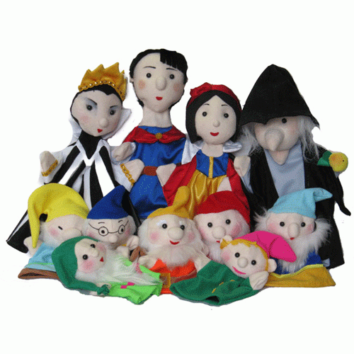 Набор состоит из 11 перчаточных кукол: Белоснежка, Принц, Мачеха, Колдунья, семь гномов.