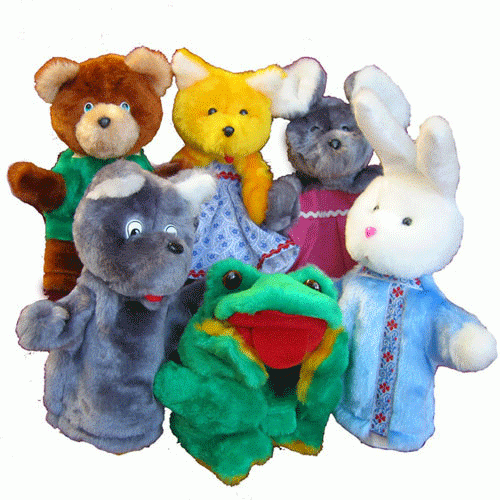 Набор состоит из 6 перчаточных кукол: Медведь, Лиса, Мышка, Заяц, Волк, Лягушка.