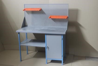 Верстак слесарный Вс-1Т с защитным экраном 600*1200мм, с навесными полками для ручного инструмента, в комплекте с тисками слесарными и табуретом, регулируемым по высоте.