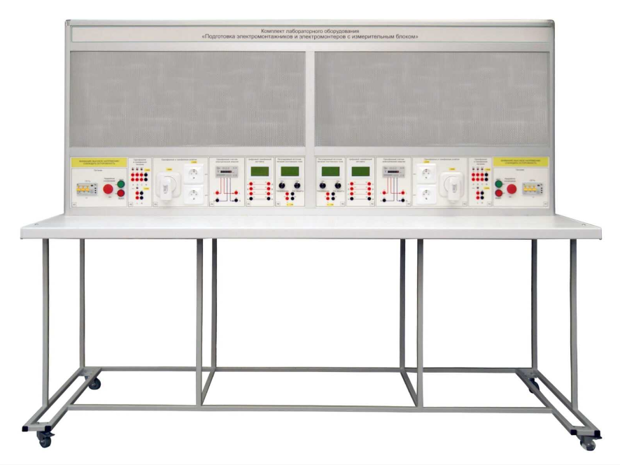 Комплект лабораторного оборудования для подготовки электромонтажников и электромонтеров с измерительным блоком предназначен для проведения лабораторно-практических занятий в учреждениях начального профессионального, среднего профессионального и высшего профессионального образования, для получения базовых и углубленных профессиональных знаний и навыков электромонтажа.