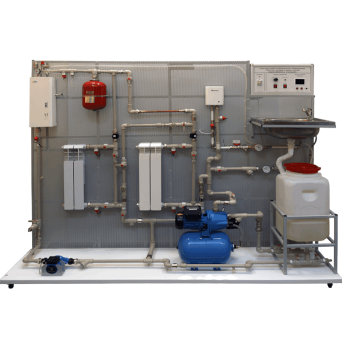 Стенд предназначен для проведения лабораторных работ по изучению и монтажу системы водоснабжения и системы отопления.