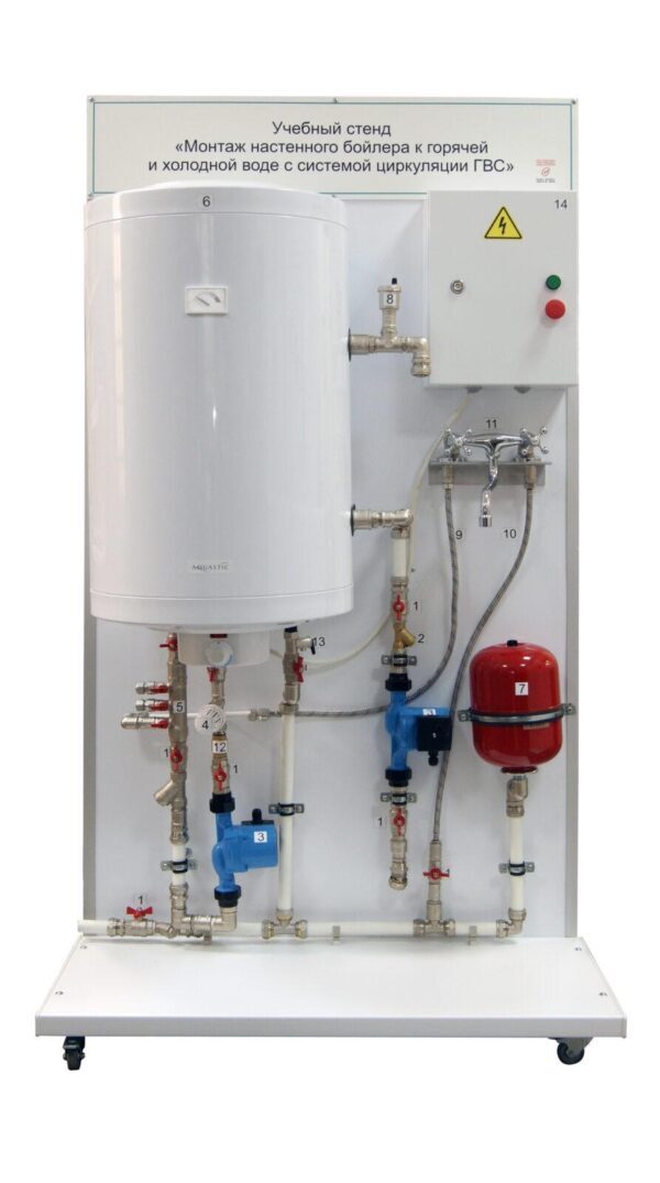 Учебный стенд «Монтаж настенного бойлера к горячей и холодной воде с системой циркуляции ГВС»