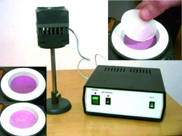 Установка представляет собой модуль с элементом Пельтье. В верхней части установки помещается кювета, в которую может быть налита вода. В процессе демонстрации эффекта Пельтье вода замораживается.