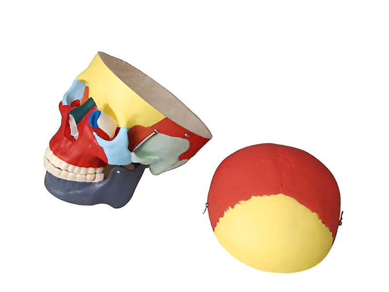 Модель позволяет продемонстрировать расположение костей черепа. Отдельные кости черепа выделены различными цветами, что позволяет четко различать их границы.
