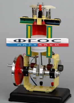 Это положение исходное. Вращая маховик по стрелке, демонстрируем принцип работы дизельного двигателя внутреннего сгорания.