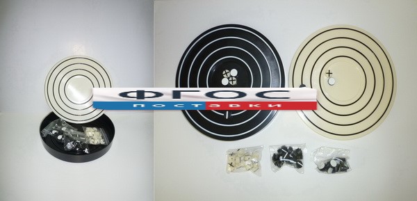 Набор для моделирования электронного строения атомов изготовлен из  пластмассы. Представляет собой два основания, имитирующие электронные уровни атомов, на которых можно моделировать с помощью наборов протонов, нейронов, электронов различные модели атомов.